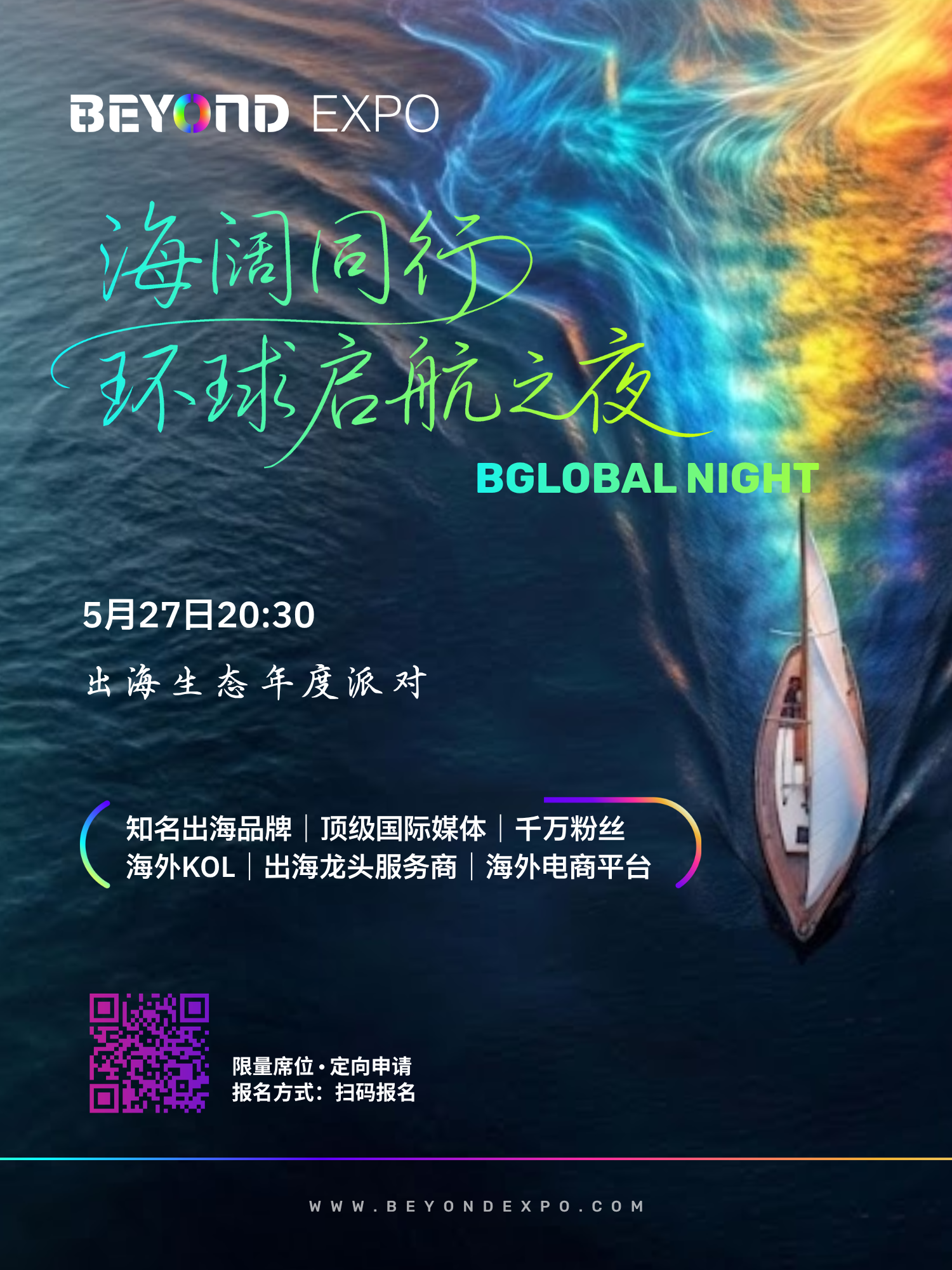 📅 5 月 27 日晚,BEYOND Expo 2026 将开启一场只属于出海人的高端社交之夜——BGlobal 环球启航之夜!霞光社作为本次 BGlobal 环球启航之夜的合作伙伴,依托其在出海与商业内容领域的深度积累,双方将共同链接品牌方、服务商、平台方与国际资源,为参与者提供更高密度的信息交流与合作机会,让出海连接更高效、更精准。